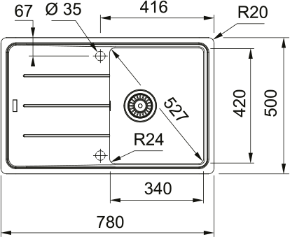 Зовн. розмір: справа наліво 780 mm